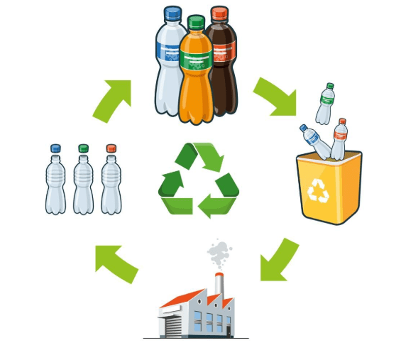 Nhựa → thành chai, hộp, sợi vải tái chế.